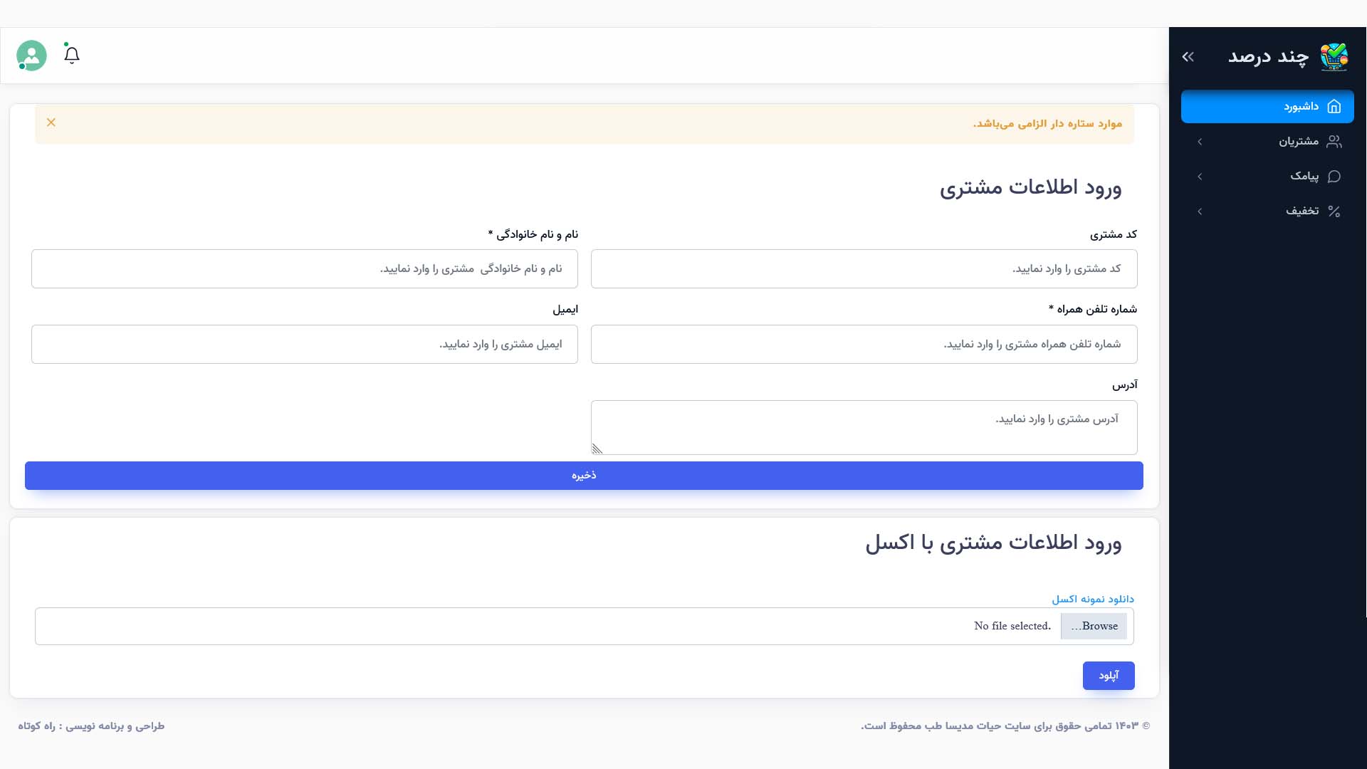 ۱. ذخیرهسازی اطلاعات مشتریان